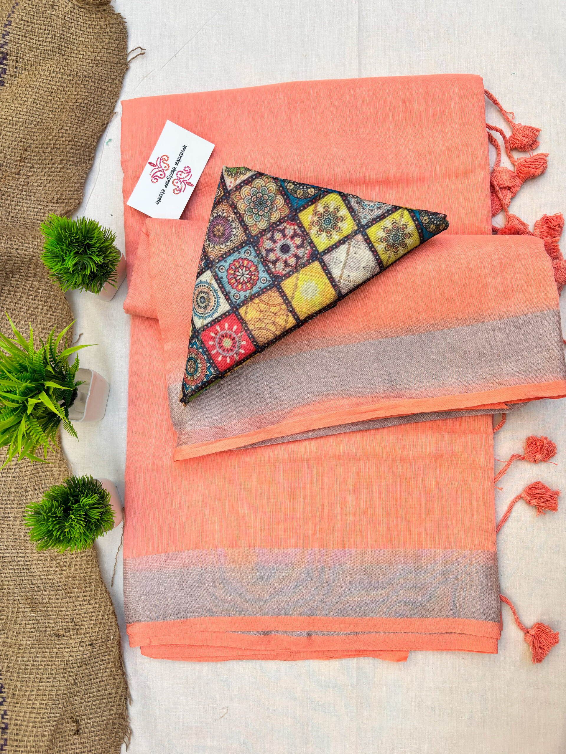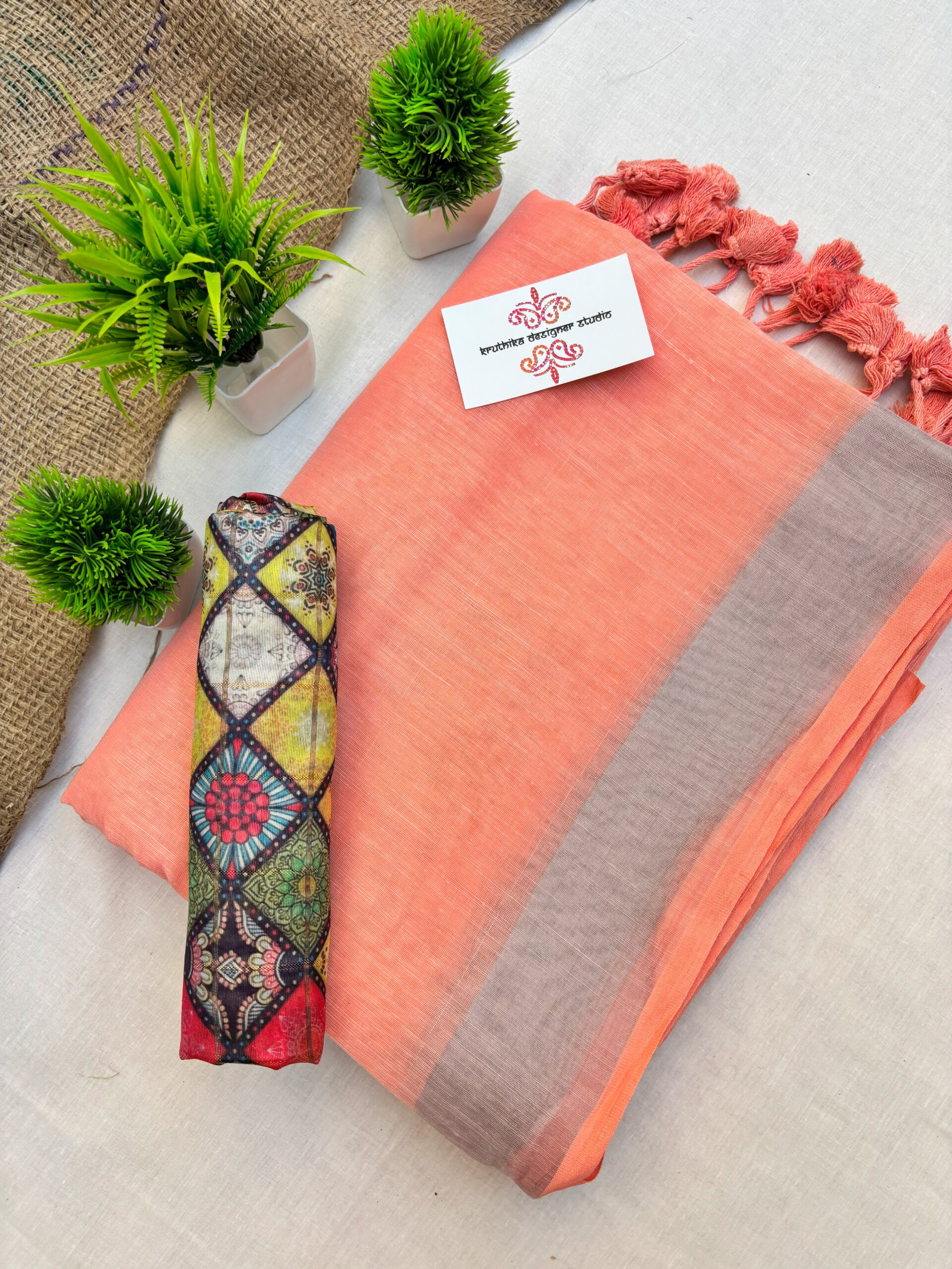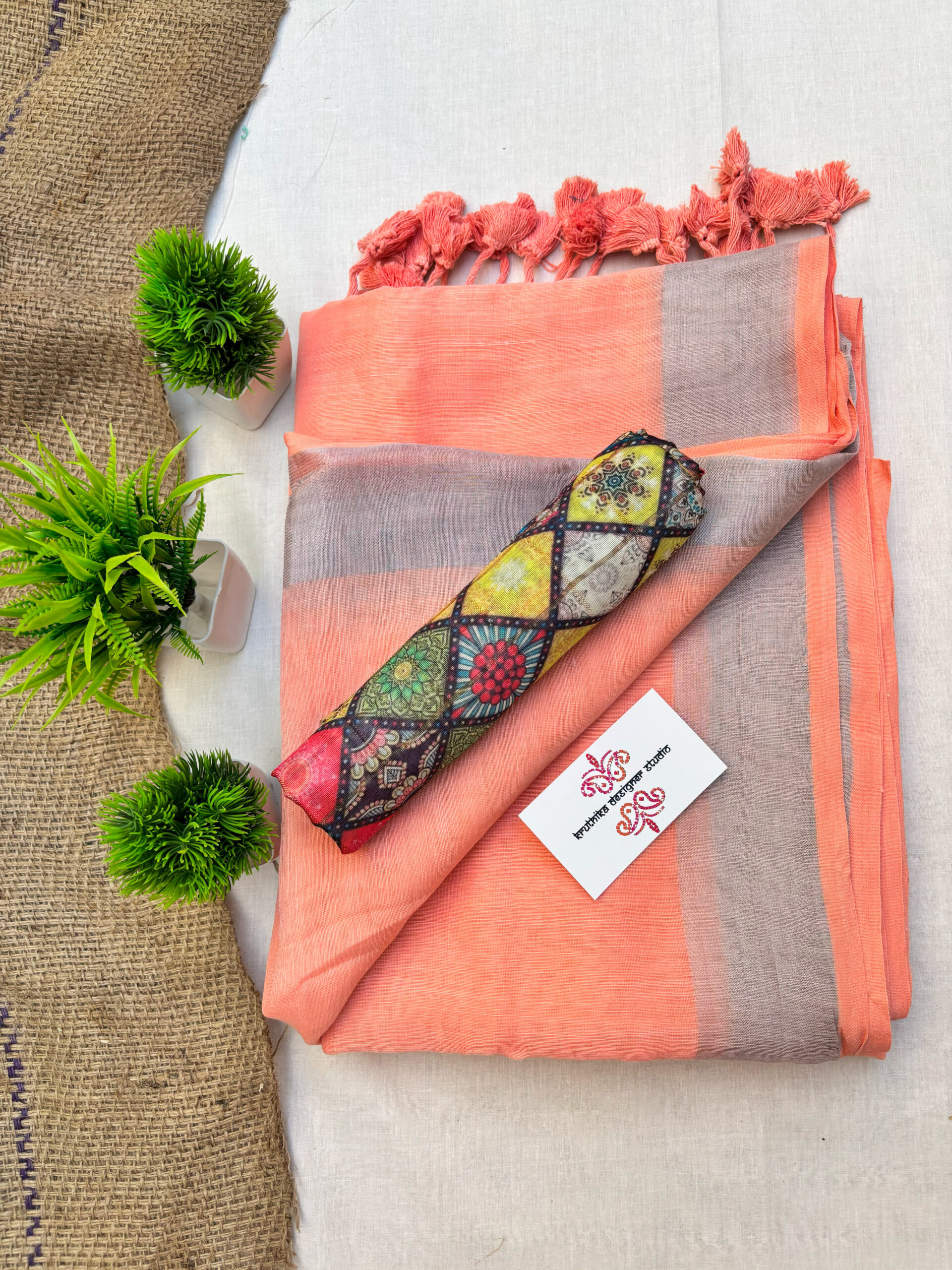 This saree measures 5.5 meters in length and 45 inches in width, accompanied by a matching blouse piece of 0.8 meters. Crafted from premium fabric, it offers elegance and comfort. Hand wash separately in cold water, avoid soaking over 5 minutes, and use medium iron for maintenance.
