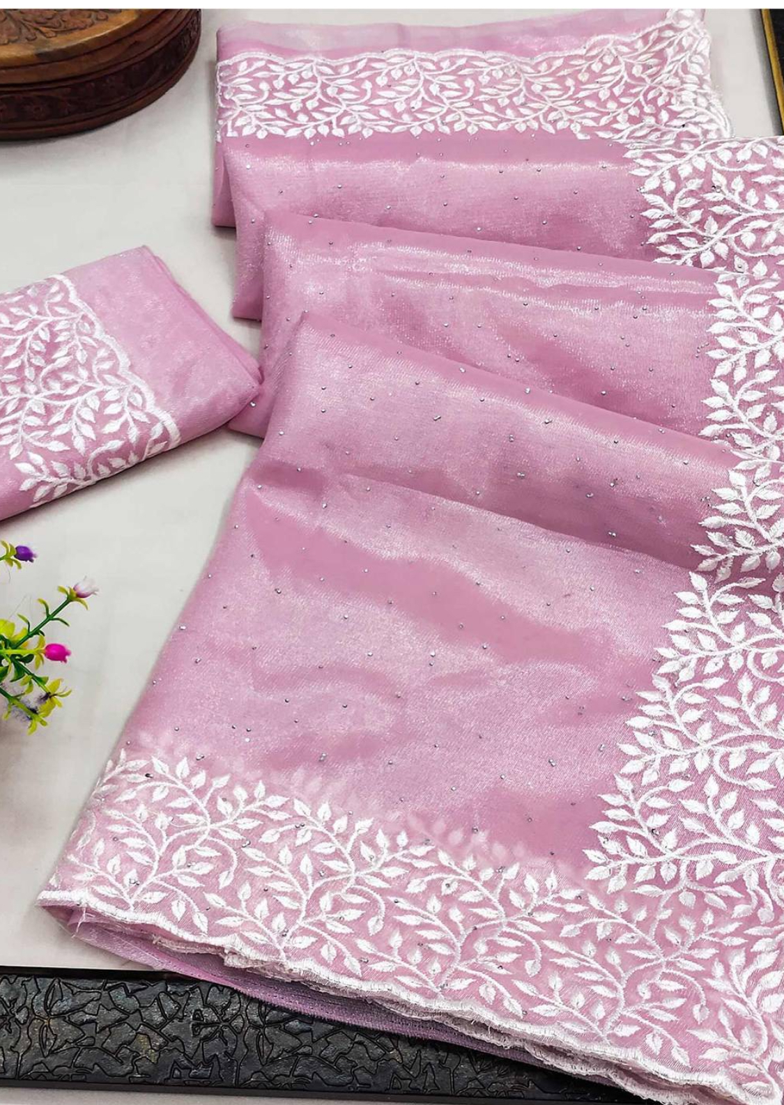 This saree measures 5.5 meters in length and 45 inches in width, accompanied by a matching blouse piece of 0.8 meters. Crafted from premium fabric, it offers elegance and comfort. Hand wash separately in cold water, avoid soaking over 5 minutes, and use medium iron for maintenance.