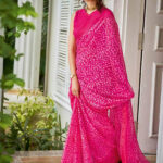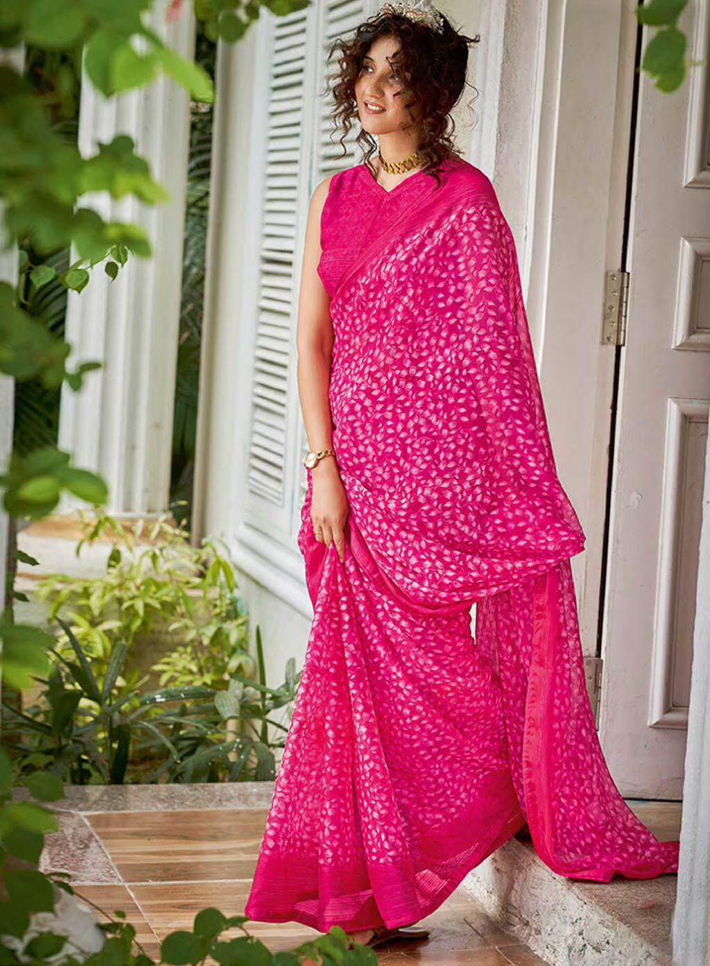 This saree measures 5.5 meters in length and 45 inches in width, accompanied by a matching blouse piece of 0.8 meters. Crafted from premium fabric, it offers elegance and comfort. Hand wash separately in cold water, avoid soaking over 5 minutes, and use medium iron for maintenance.