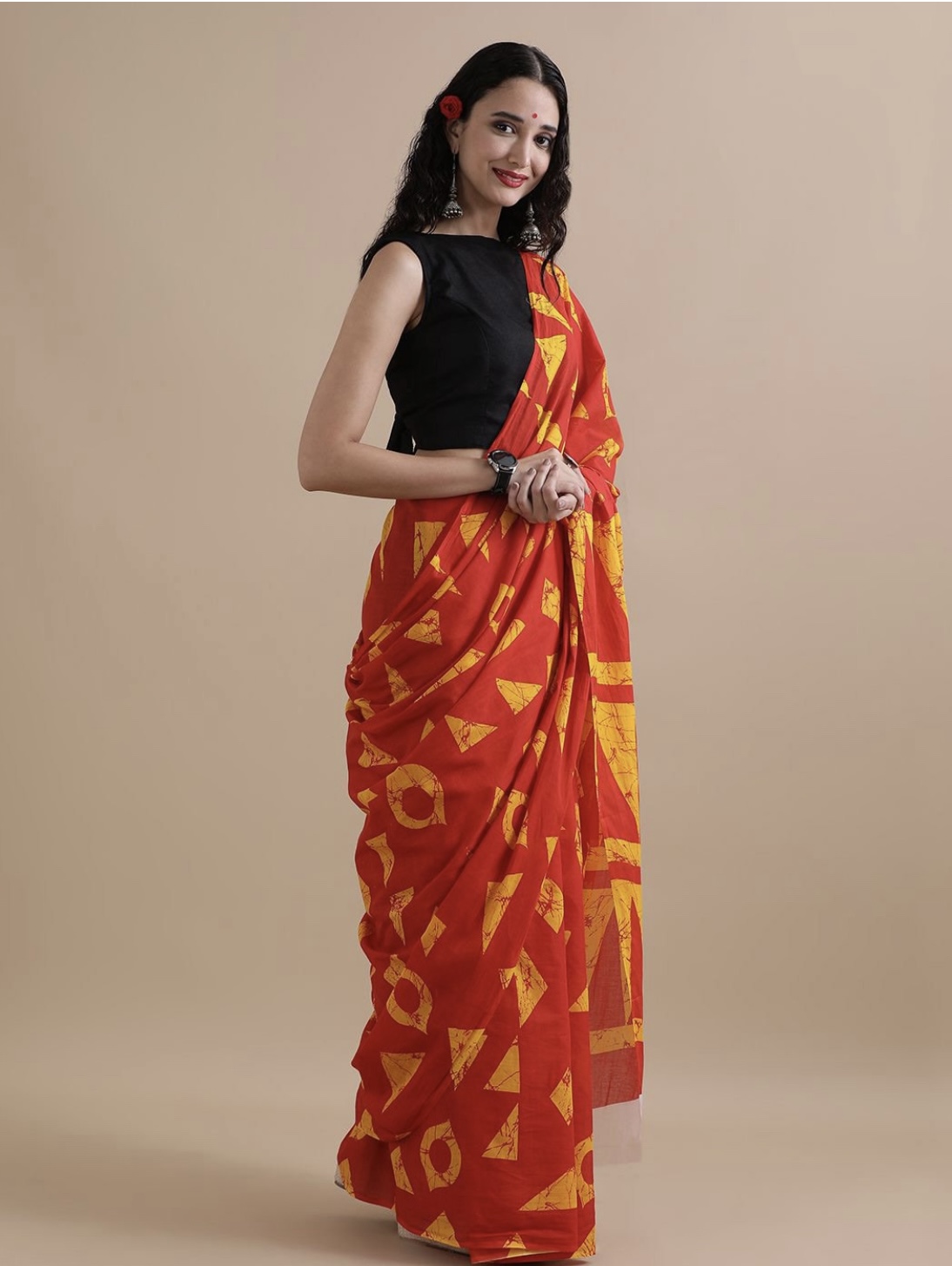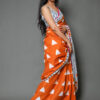 This saree measures 5.5 meters in length and 45 inches in width, accompanied by a matching blouse piece of 0.8 meters. Crafted from premium fabric, it offers elegance and comfort. Hand wash separately in cold water, avoid soaking over 5 minutes, and use medium iron for maintenance.